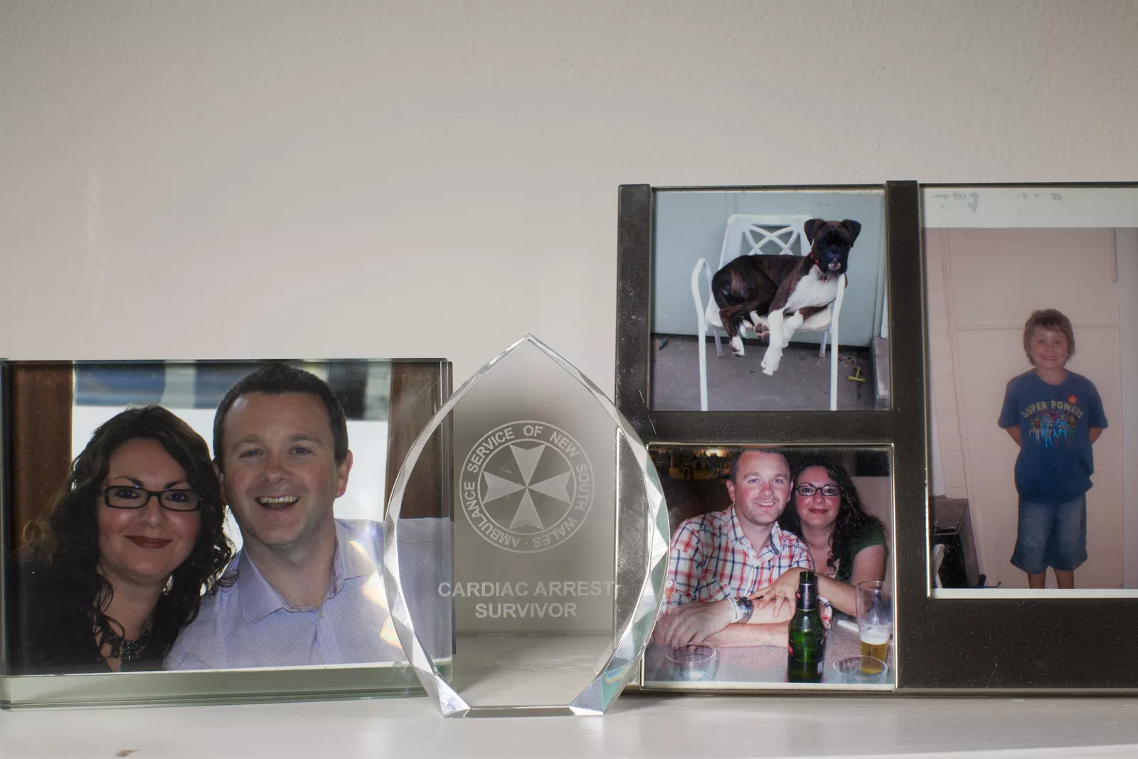 An award from the New South Wales Ambulance Service holds pride of place on Jason Davis’ mantelpiece, nestled amongst photos of himself with his wife Anna and son Ollie.