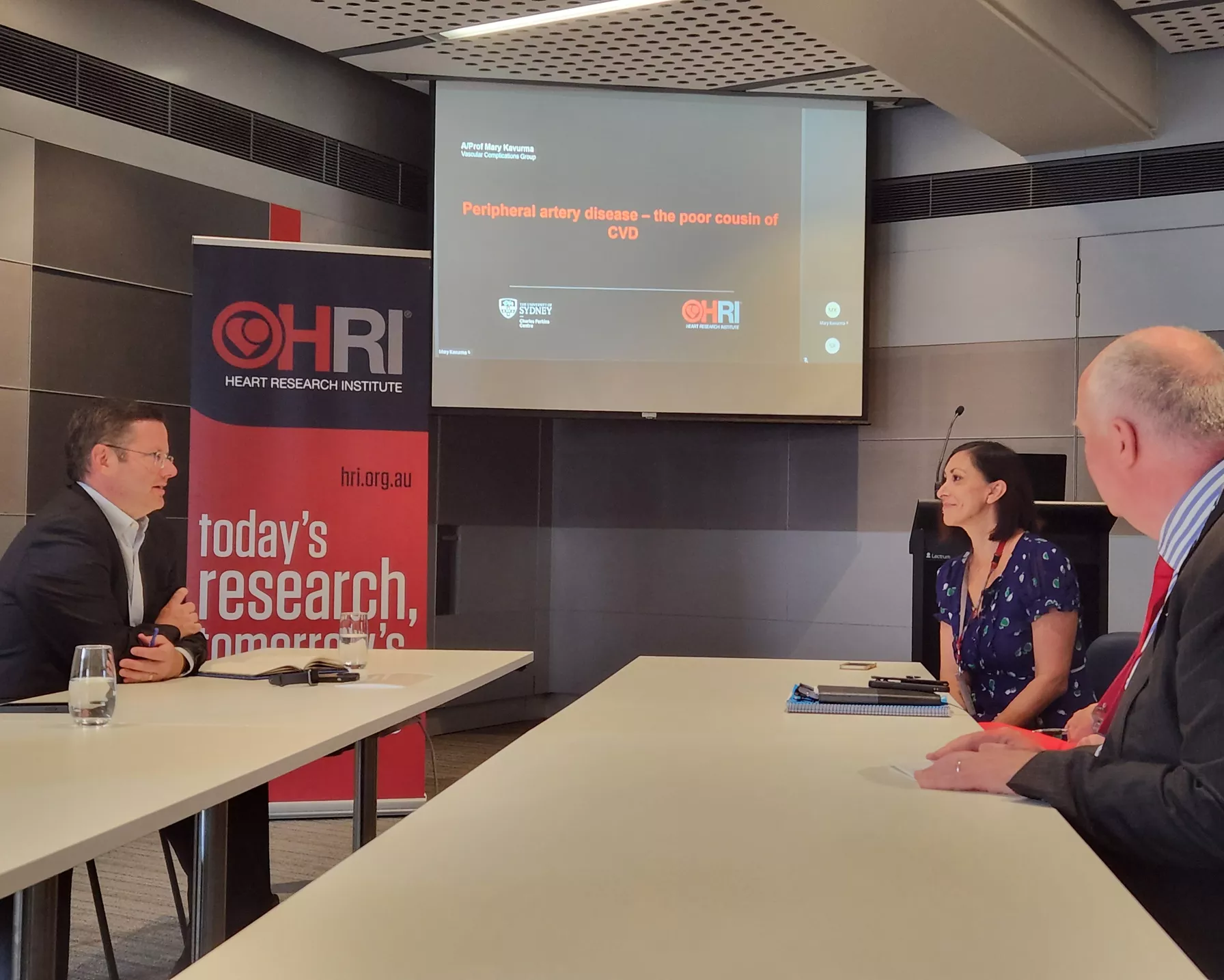 Assoc Prof Kavurma also gave a presentation about her groundbreaking research into PAD, a type of CVD caused by narrow or blocked arteries in limbs that often results in amputation.